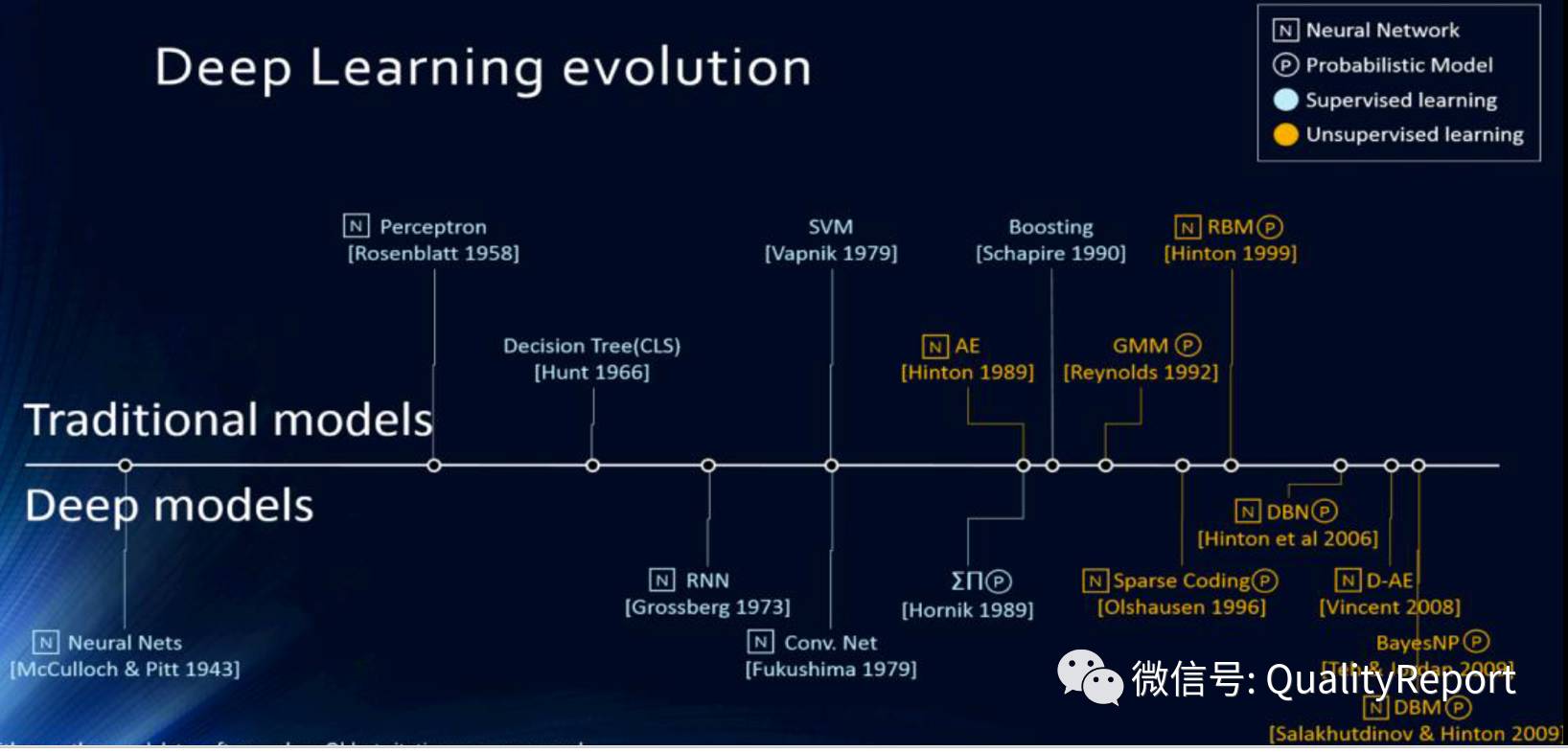 - 有监督学习:感知器、SVM、集成学习Boosting、RNN等;