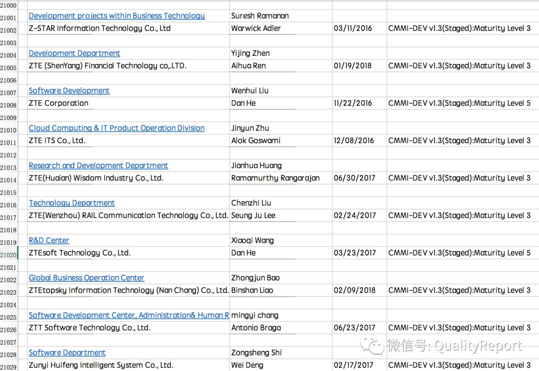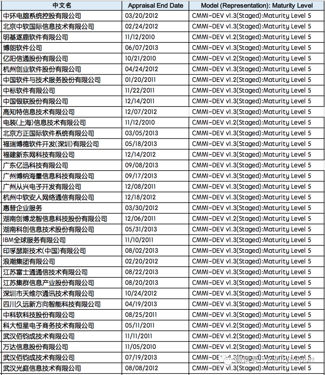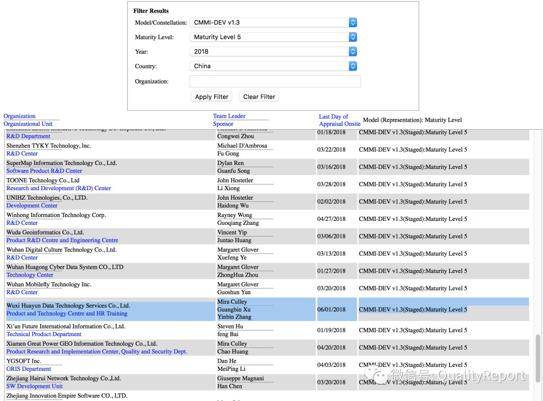 表2 2015-2018通过CMMI认证的列表之末尾表格显示