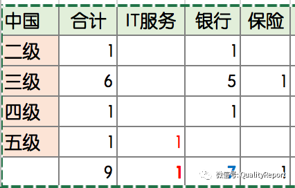 从行业分布看,如表4所示,IT服务排第一,这是很容易理解的,做服务外包,需要一个第三方的证书来证明自己,它们想获得认证是无可厚非的。排在第2名的银行,这其中大部分来自我国,如表5所示。如果去掉我国的数字(6),也就等于5,比电信/制造业略高,没有现在这么大的差异。