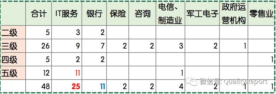 表4 通过TMMi认证的公司之行业分布情况